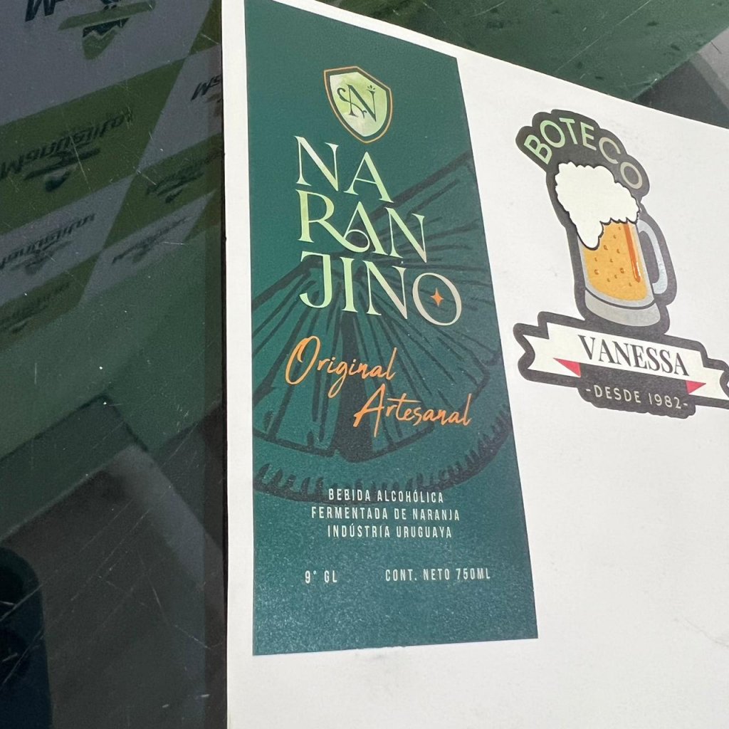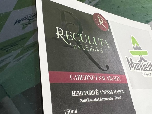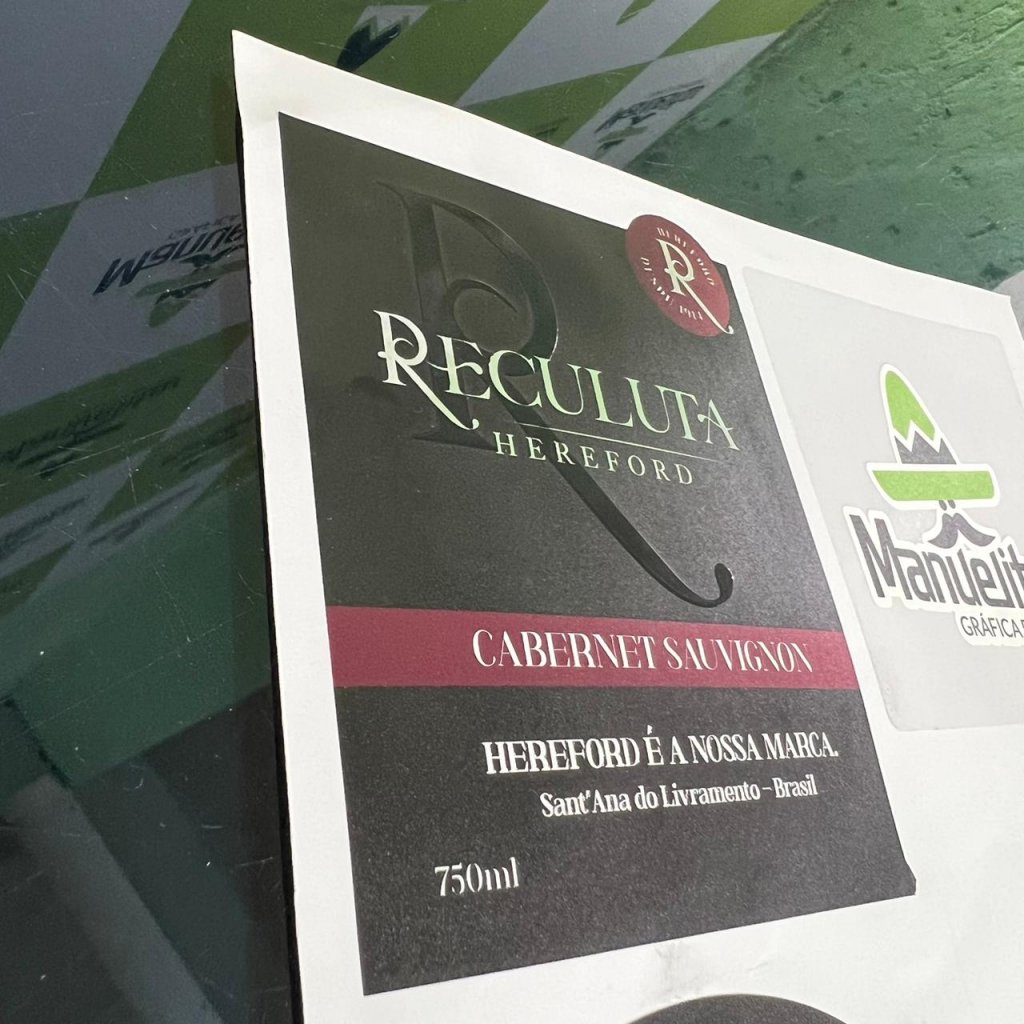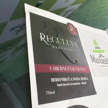 Rótulos em material diferenciado com aplicação de cor branca e verniz UV
